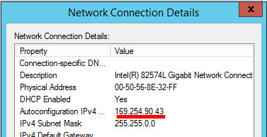 Z výpisu IP konfigurace na tomto virtuálním stoji je patrné, že nebyl schopen získat IP adresu z DHCP serveru a proto si nastavil APIPA IP adresu. Která ovšem není routovatelná.