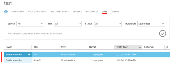 Jakmile je virtuální stroj přidán do PROTECTION GROUP, dojde k sekci „JOBS“ ke spuštění úlohy, která se pokusí s nastavenými pověřeními o instalaci Mobility service na vybrané virtuální stroje.