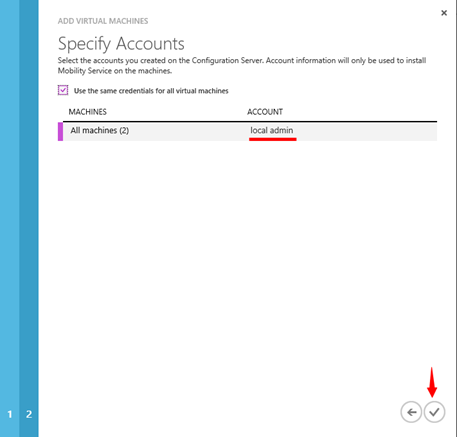 Na další kartě průvodce pak vybereme pověření pro námi vybrané virtuální stroje, které nám umožní instalaci Mobility service.